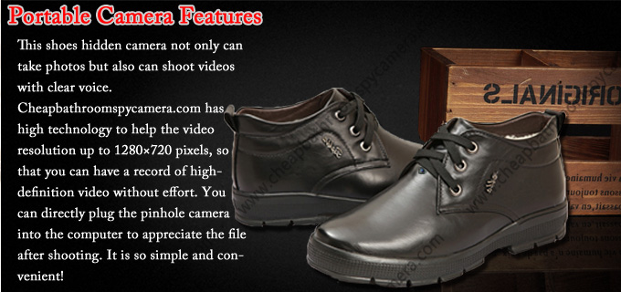 It is one kind of spy pinhole cameras. From its ordinary appearance, nobody will doubt that it’s only a Men shoes, so it has excellent disguise. When it works, there won’t be any noise, nobody could notice it,Because Men shoes ( from the feet up and shoot camera, so no one will doubt your shoes. This makes the shooting more secretly. From the upgrade technology, you can get clearer videos, and with its large capacity battery, you can shoot videos as long as 20 hours for one time. No wonderful things can avoid this professional spy pinhole camera. It is a good helper for you to achieve your dream of being an excellent detective.Large memory, large battery capacity, is the ideal choice to go out for a long time detective